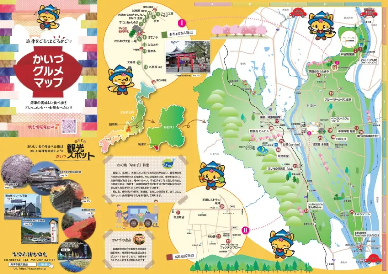 かいづグルメマップでは、海津市内の飲食店や名物がまとめられており、